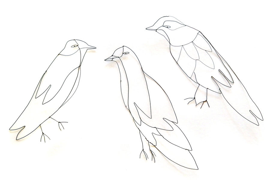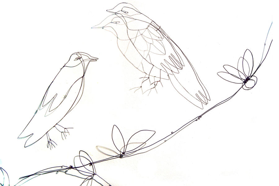 are made from wire, and show small scenes, climbing and entwining