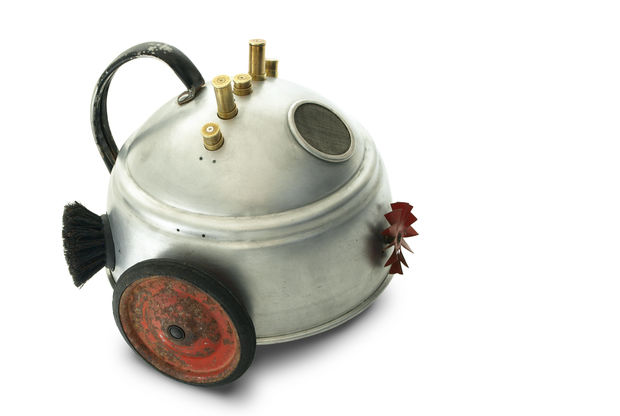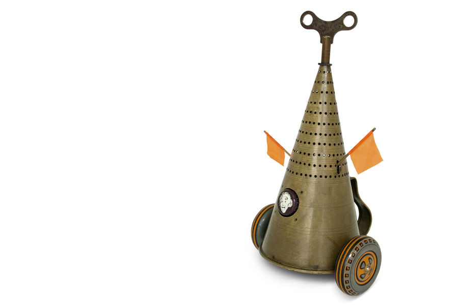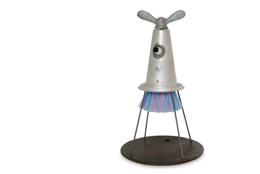 Don't stare, that's right! Even if they appear shy, with restrained curiosity or loudmouthed, with a vibrating tongue. They come out of the kitchen, the scrapyard or the junk room and do their thing. They let us wonder - may I? - turn the wheel? Push? Rattle? They awaken the child in us, play with associations and terms, wave their flag and let cartridge cases parade without being militant, send messages via crown cork stickers, rotate with brushes and key antennas and uninhibitedly observe their surroundings - you and me!