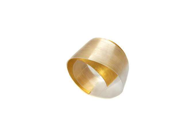 Goldsmith Marion Heilig doesn' t spin straw into gold - but she is 'nt far away so doing. For her bangles she changes apparently profane material plastic into something appearing extremly precious. She makes gold shining through its semi-transparent layers.