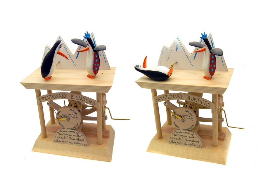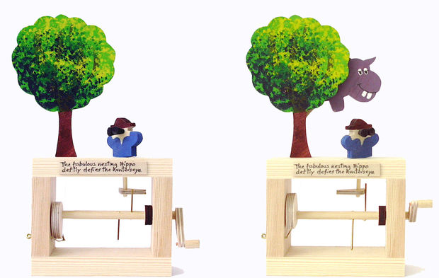 Neil Hardy invites sometimes very simple and sometimes extremely complicated mechanisms to make his automata work with humour, artistic claim and technical refinement. This often means a whole chain of different movements are launched. His picture world is filled with irony of tiny amazing stories.