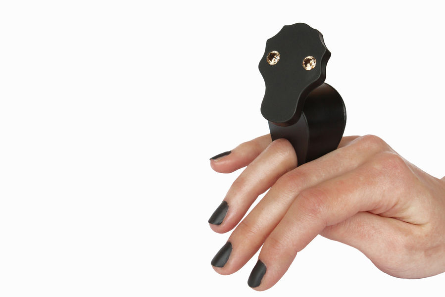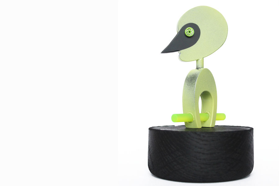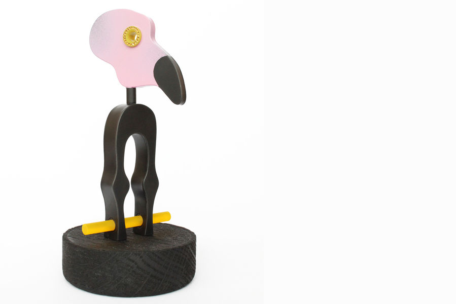 His objects are based on his own image, which he sees as a mirror of his perception of the world and its influence on himself. In constructive processes of alienation and abstraction, he develops images with universal expressiveness out of it. The face serves him as a place of transformation, with which a different character appears. Based on his sketches, Niklas Link uses a micro-welding machine to construct hollow steel bodies to which he adds plastic elements. Often these additions are mass products that take on an unexpected, expressive quality in the new context. With the use of zirconium dioxide - industrially produced diamonds - as well as blackened and coloured surfaces, he sets allegorical accents which he wants to be understood as a reference to the transience and variability of living beings. "As these age, so do my characters age. By wearing them they live and get traces. With the formation of an individual patina, each character develops differently".