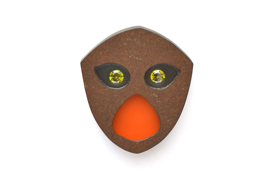 The portraits - pieces of jewellery - of Niklas Link have their origin in the abstraction of his own self-portrait. In them the mystery of a mask is combined with the irony of caricature or with symbolic expressiveness.