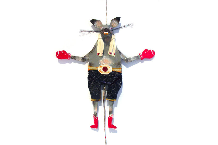 mouse who despite a black eye swings his boxing gloves or the huntsman