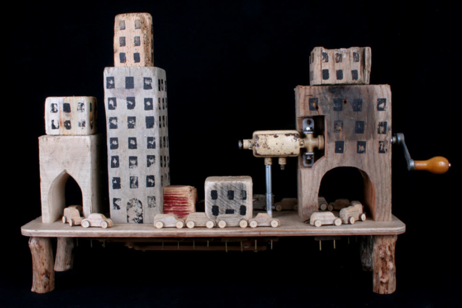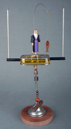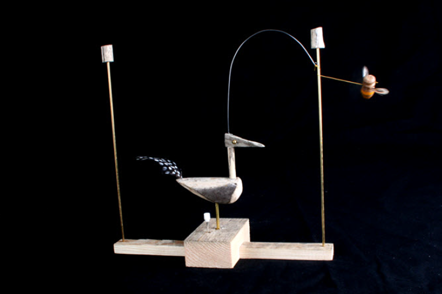 "I try to make things that move in simple but interesting ways. Moving toys have always been made all over the world from wood, bamboo, clay, paper, string, wire, leaves, feathers and so on. These traditional toys have been a strong influence on my work, and I have travelled in Indonesia, Mexico, India and Japan in search of them. There are various pressures leading to their disappearance today, but they are still to be found in many parts of the world, sold on the street or appearing for fairs and festivals.