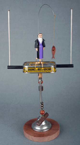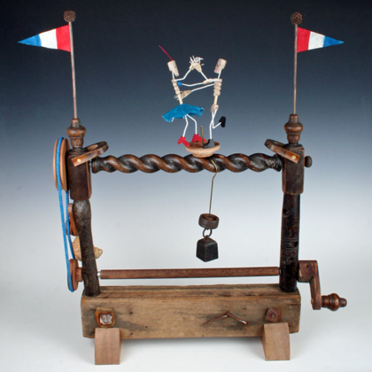 At their best they achieve a vigorous imagery and make ingenious use of really simple mechanism. The makers of these toys have also been constantly inventive in their use of materials. They have cleverly exploited the properties of whatever natural, re-used and recycled materials were readily available to them. I try to do the same and at present particularly like using driftwood because collecting it gives me a good excuse for going to the seaside."