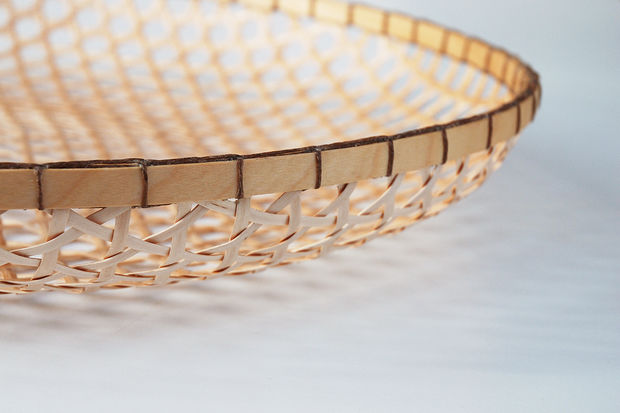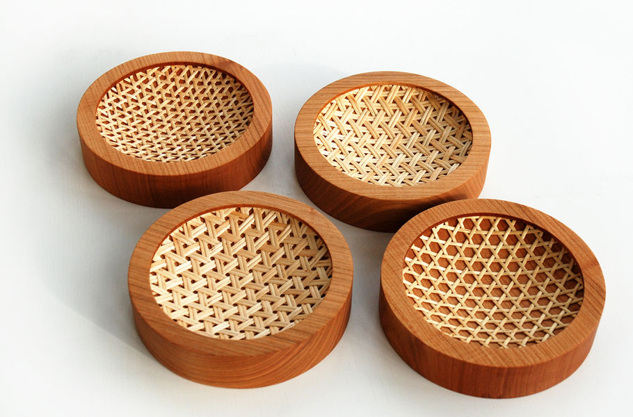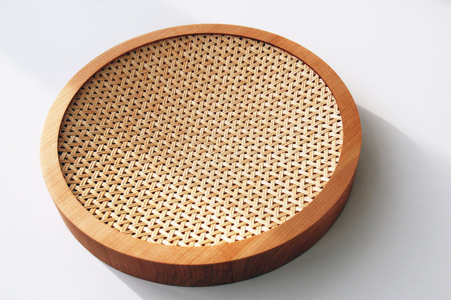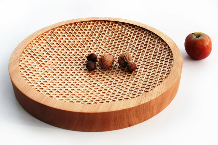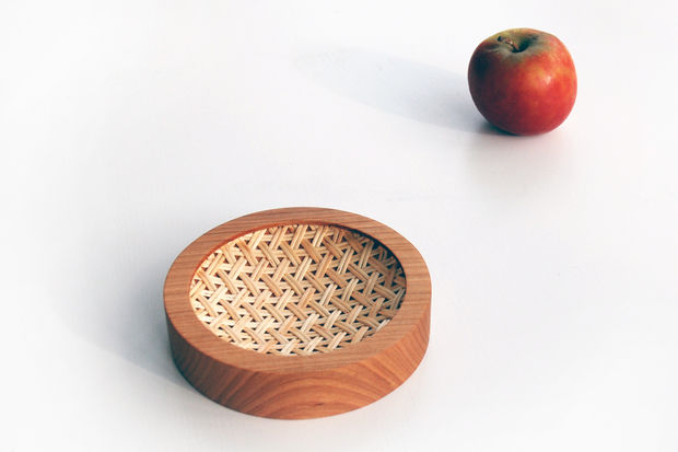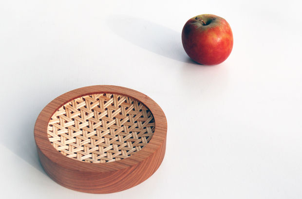The object bowls serve as canvas for the variety of traditional fine wickerwork. The solid cherry wood provides the basis for this and is supplemented by fine wickerwork - woven in various techniques. The bowls are intended as objects as well as objects of daily use.