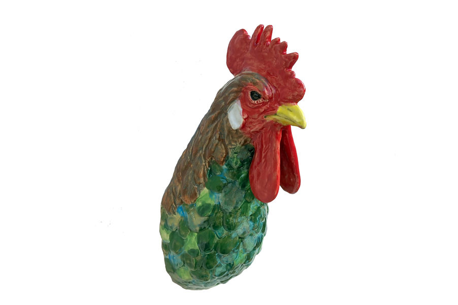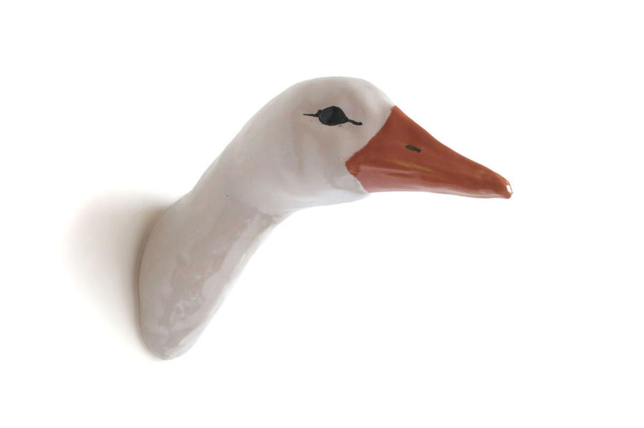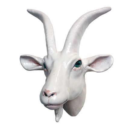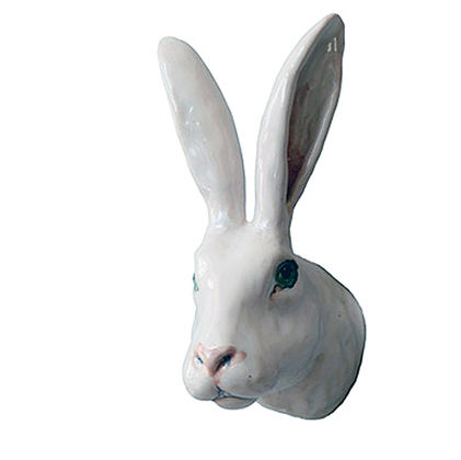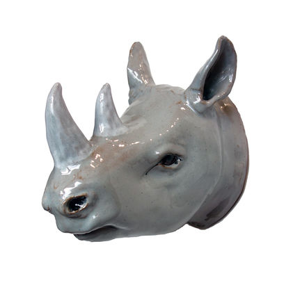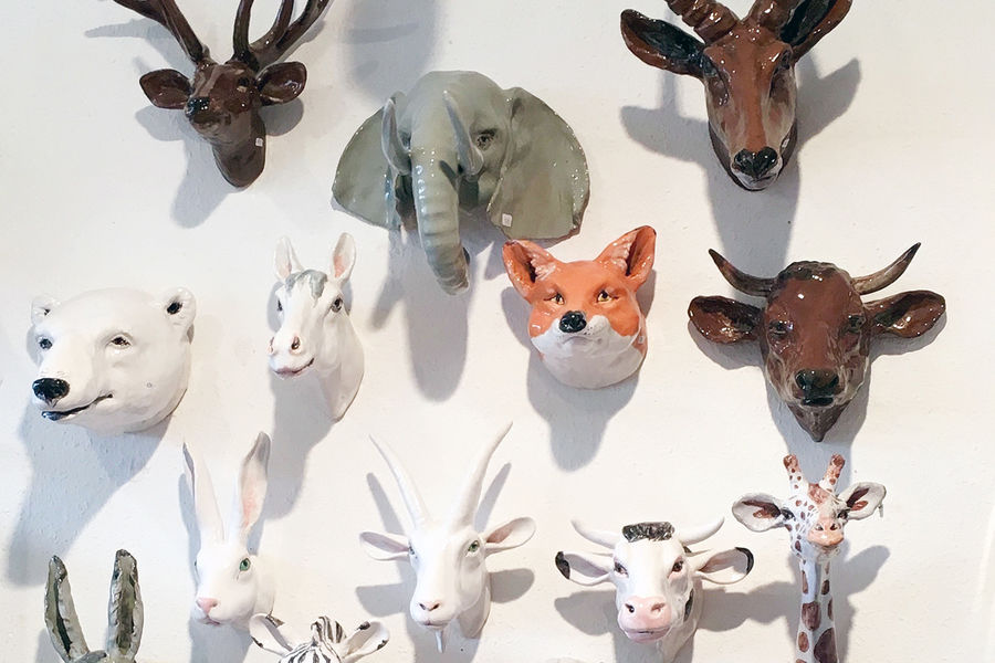 She is multiplicates her characteristic animal trophies by self created moulds. They are made in clay, the deatiles ar hand formed. Than all is fired, glazed and painted in further steps of production. They look at us, hang on the wall and follow us, maybe wonder what we are doing. They support our preference of special animals and reminde us to take care of their fellows. Rosi carefully sizes down the heads to guarantee a good companionship as the full size of an animals head would be scary.