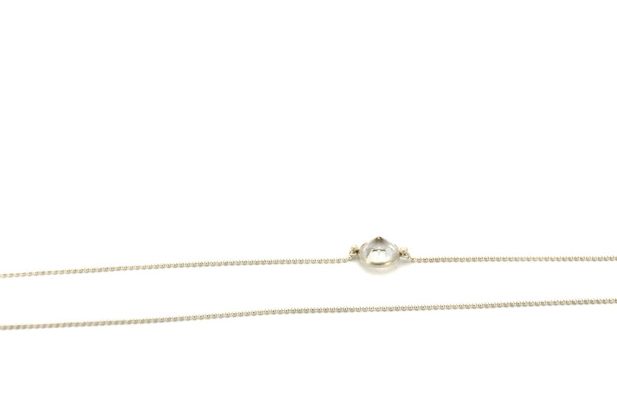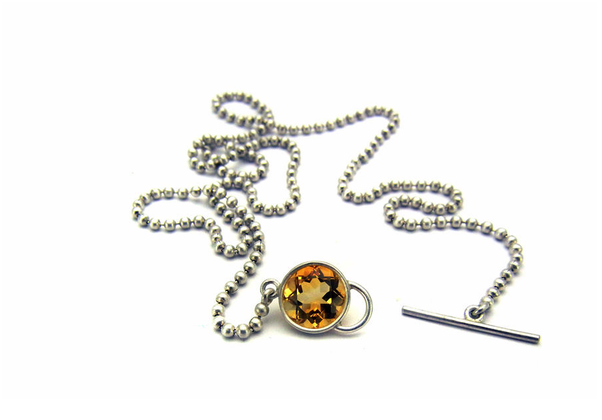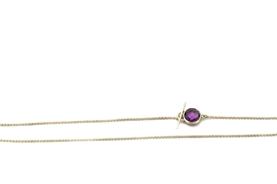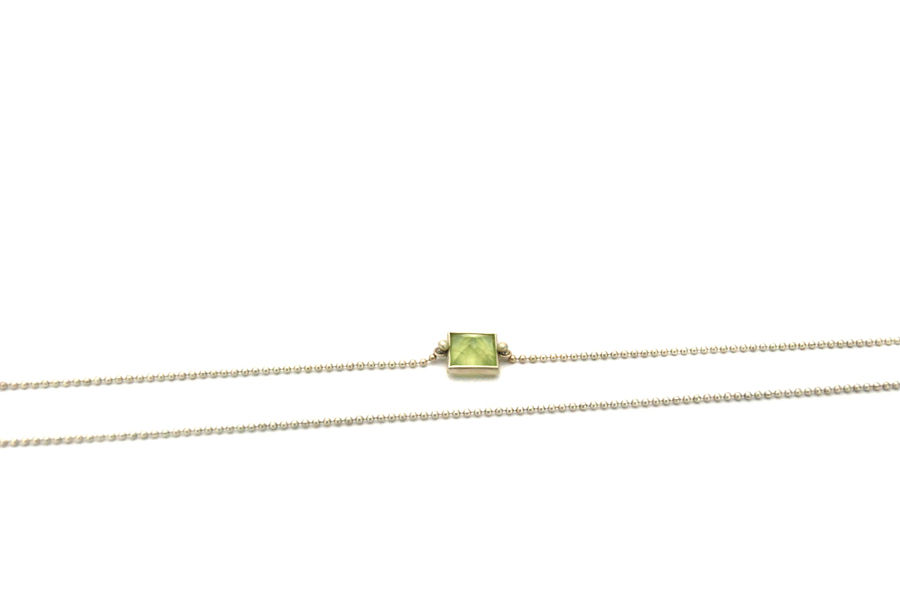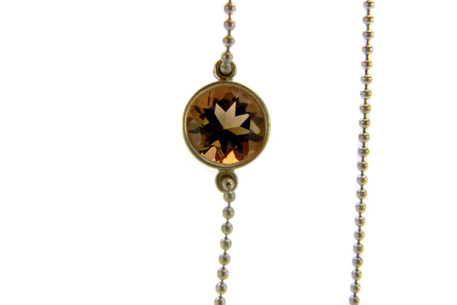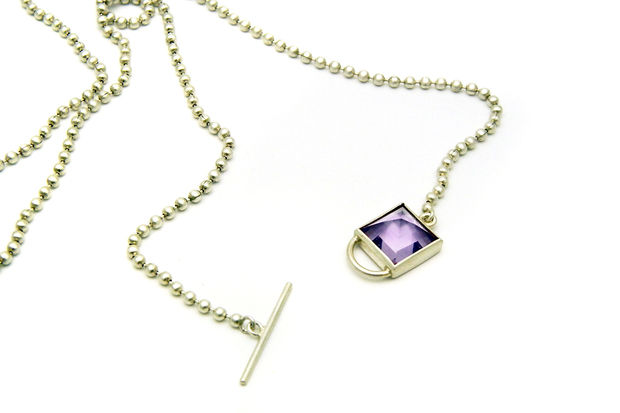 In order to leave free reign to this game the stones are only set by her in small delicate setting. the hang on a "thin ribbon" which leaves freedom of movement for the stone. Silver and stone are what Silvia Bunke uses, independent from the Euro worth of the same metal. The toggle fastenings belong to the necklace and are right next to the setting of the stones. They are so beautiful that they don' t need to be hidden.