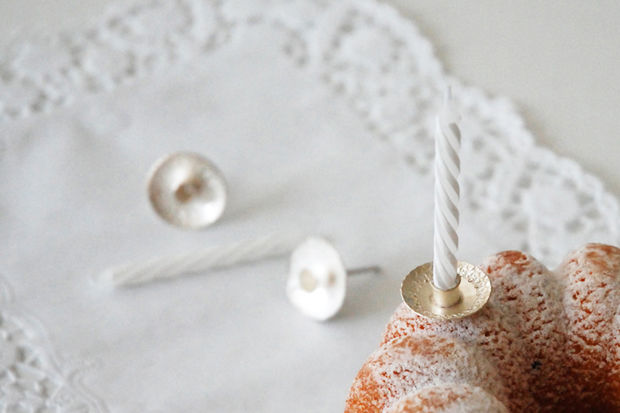Cake decoration made by hand from the finest silver is the ideal present for baptism or birth! As an elegant relation to the colourful plastic candle-holder on the top of every birthday cake it will carry an annual light for each new year in someones life.