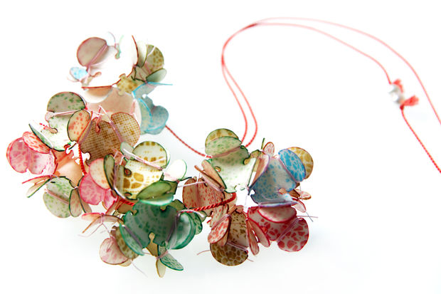 Ulrike Hamm  - artifical nature, preciousness and lightness are characteristic for her jewellery made from coloured parchment.